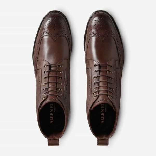 - Sophisticated wingtip derby boot featuring detailed brogue perforations and medallion accents