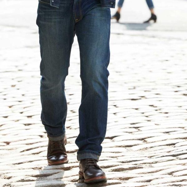 - Classic straight leg medium rinse jeans with a slimmer fit