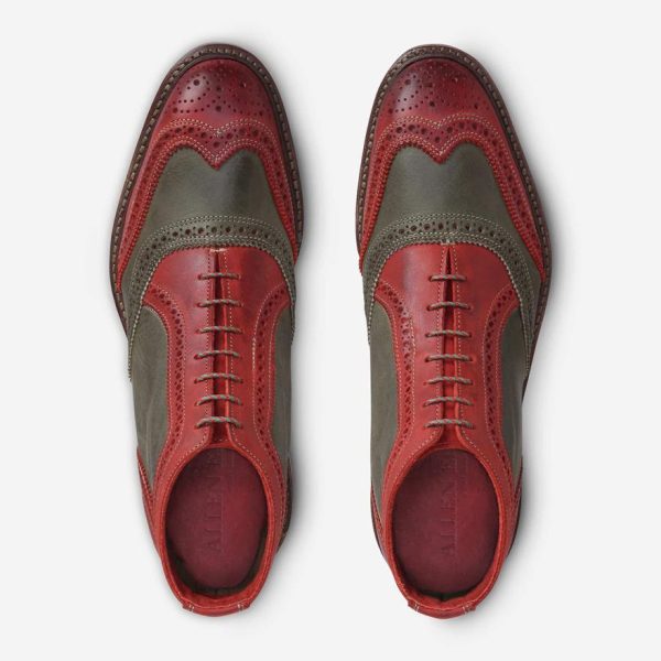 - Cap-toe wingtip boots with pinking and perfing details
