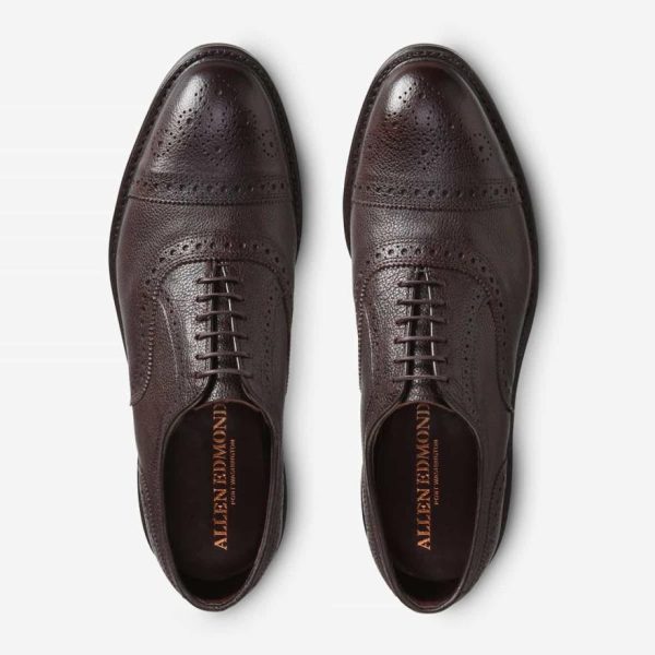 - Six-eyelet cap-toe balmoral featuring sophisticated brogue perforations and distinctive toe medallion